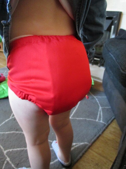 Chloe is 2.5 years old and heading towards potty training now so wears pull ups on a daily basis. I told her I was going to put a special nappy on her to see if it fit - expecting a fuss but she was actually happy to wear it so it must have been comfortable for her (bearing in mind she has never had a fluffy bum). The fit was good round her legs and the poppers fastened around her waist with room to grow though I think I could probably have done them up a bit better as they seemed to bunch up. Chloe wore the nappy for about 2 hours the first time. I haven't sent her to Nursery in them & I'm not sure if I'd use them over night but I will keep using them during the day at home for her I think. (Maybe I'll risk a night wear next week!)